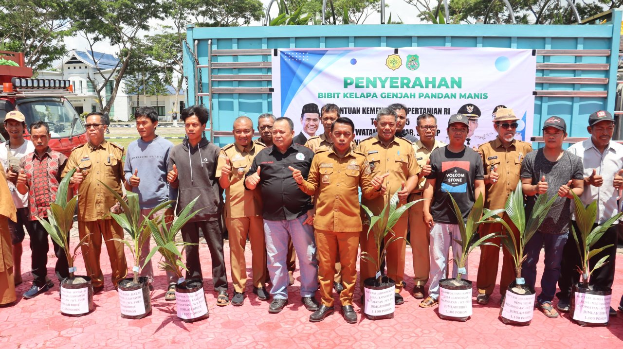 Ia menambahkan bibit kelapa genjah pandan manis diharapkan menjadi komoditas andalan baru bagi petani. Bupati juga menekankan pentingnya pendampingan berkelanjutan mulai dari penyaluran, penanaman, pemeliharaan, hingga pengelolaan hasil panen.