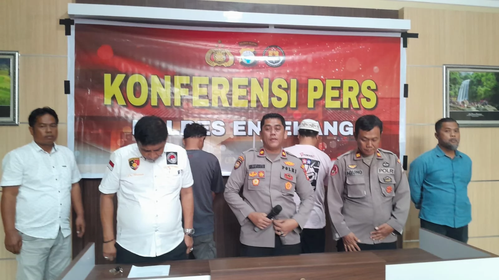 FAKTA1.COM, ENREKANG— Pada konferensi pers terkait tindak pidana penyalahgunaan narkoba golongan 1 jenis bukan tanaman.  Polres Enrekang mengungkap penangkapan dua orang terduga. Di Ruang lobi Polres Enrekang.  Selasa 09 Juni 24
