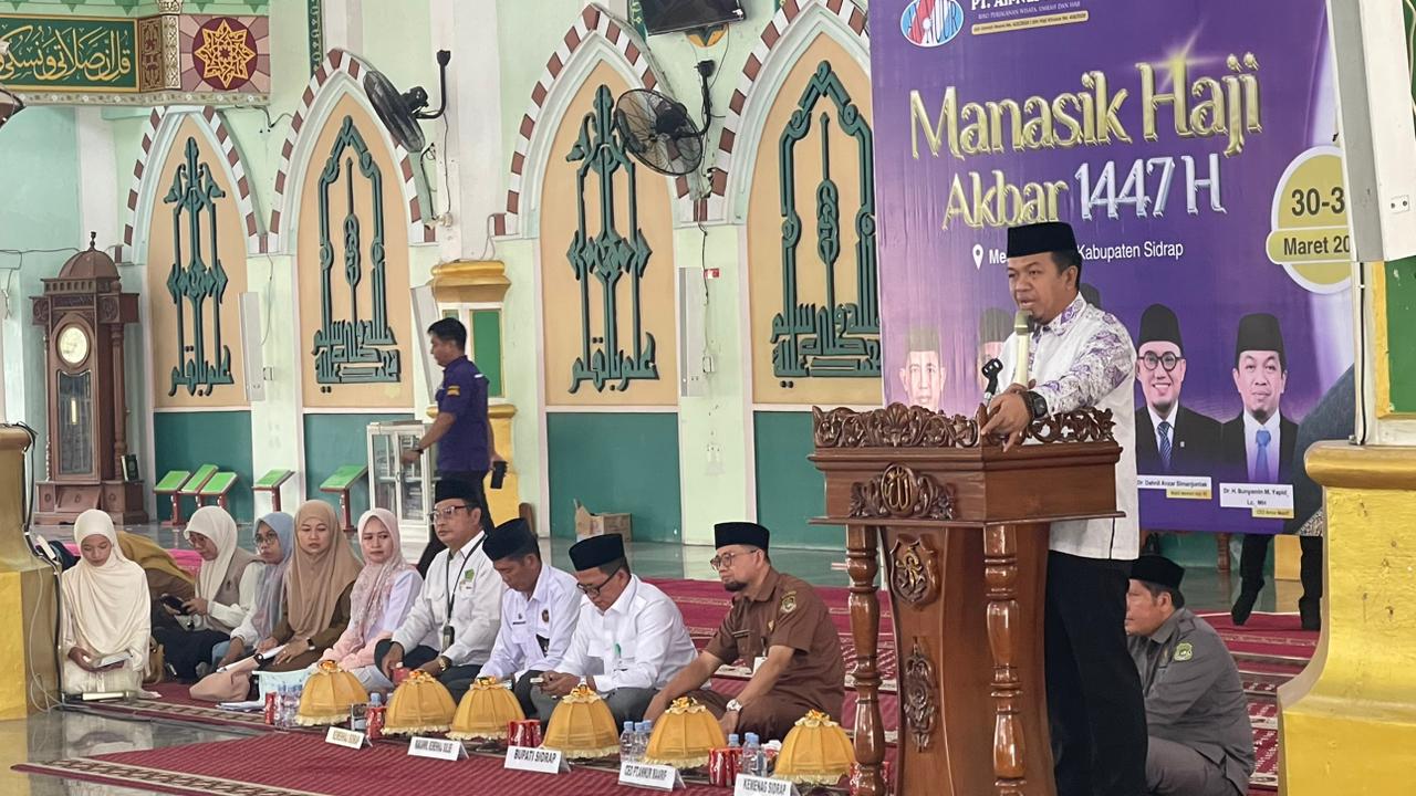 SIDRAP, FAKTA1.COM – Co-Founder PT Annur Maarif, Dr. H. Bunyamin M. Yapid, membawakan materi pada hari pertama pembekalan Manasik Haji Akbar yang digelar di Masjid Agung Sidrap, Senin (30/03/2026).