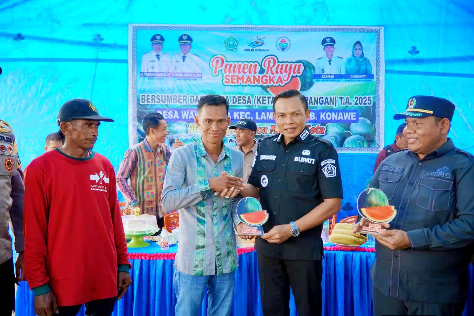 Join WhatsAppKonawe, fakta1.com – Panen raya semangka menjelang Ramadan membawa kebahagiaan dan kebanggaan bagi petani setempat. Kehadiran Bupati Konawe menjadi penyemangat sekaligus bukti dukungan nyata pemerintah terhadap sektor pertanian. Kamis 13 Februari 2026.