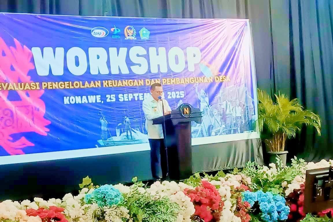 FAKTA1.COM, KONAWE – Pemerintah Kabupaten Konawe menegaskan arah baru pembangunan desa: bukan lagi sekadar penerima dana transfer, melainkan pusat penggerak ekonomi daerah. Hal itu ditegaskan Bupati Konawe, H. Yusran Akbar, ST, saat membuka Workshop Evaluasi Pengelolaan Keuangan dan Pembangunan Desa Tahun 2025 di salah satu hotel di Kecamatan Unaaha, Kamis (25/9/2025).