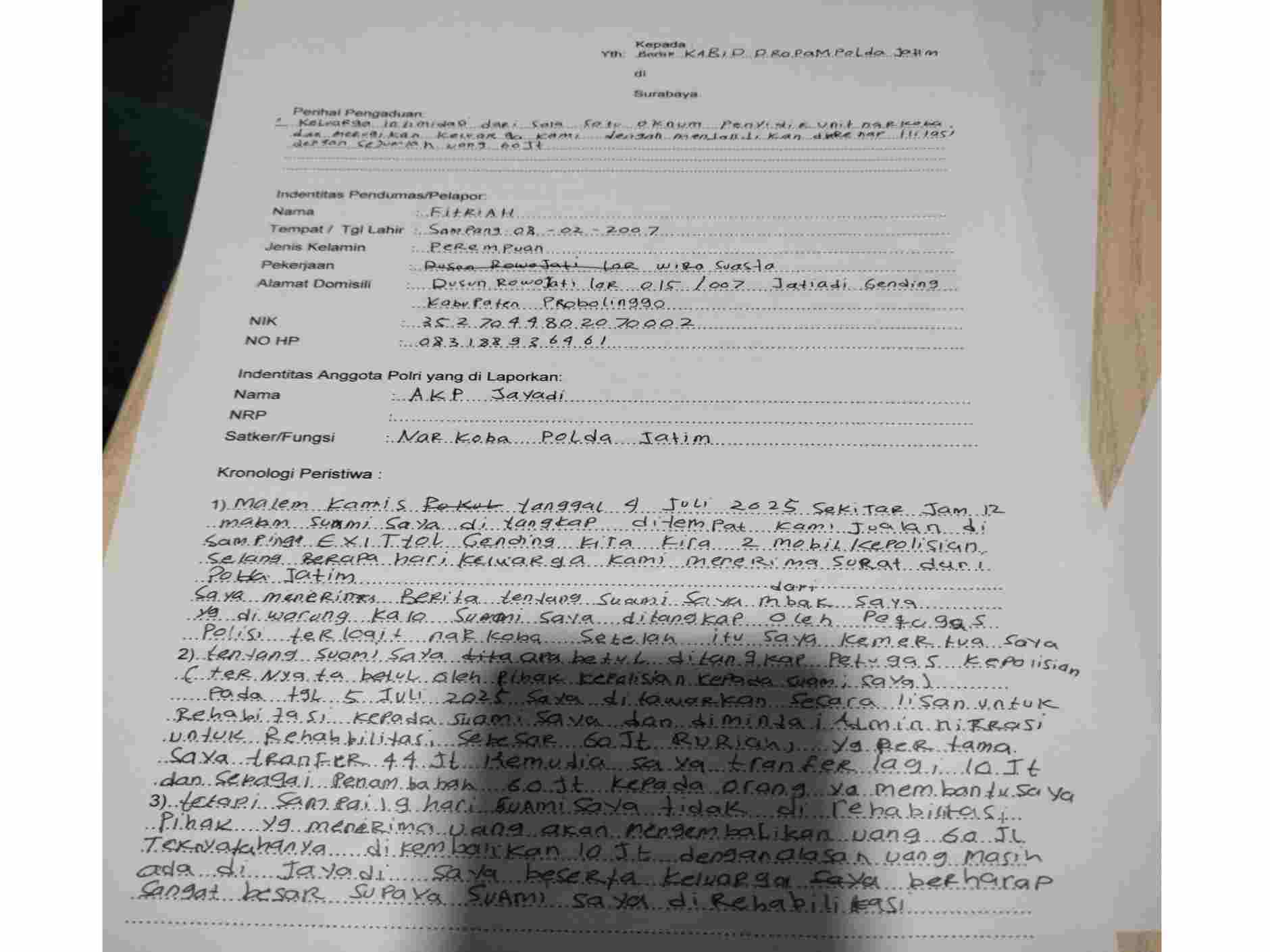 Oknum Polisi Berpangkat AKP Di Laporkan Propam Polda Jatim.Terkait Dugaan Rehabilitasi