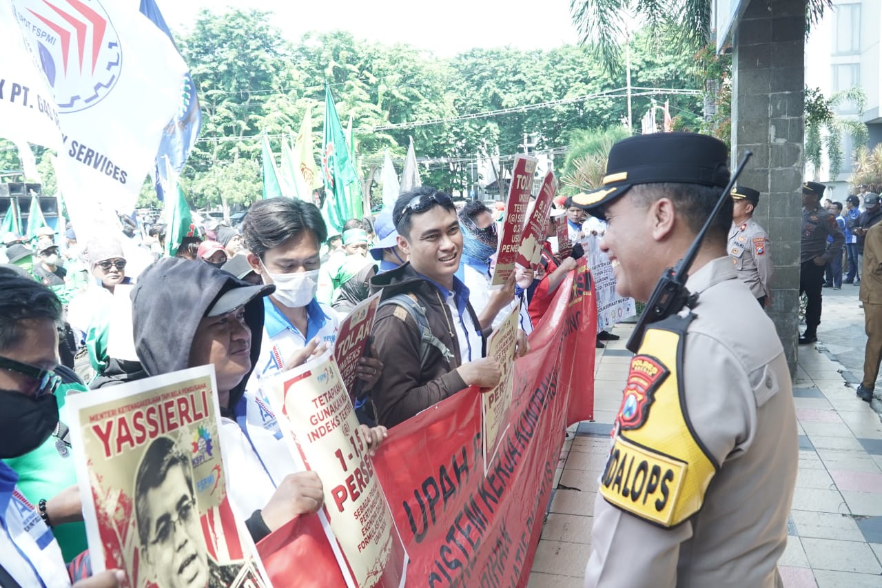 Dengan Pengamanan Humanis, Aksi Buruh Gresik Berjalan Damai dan Kondusif