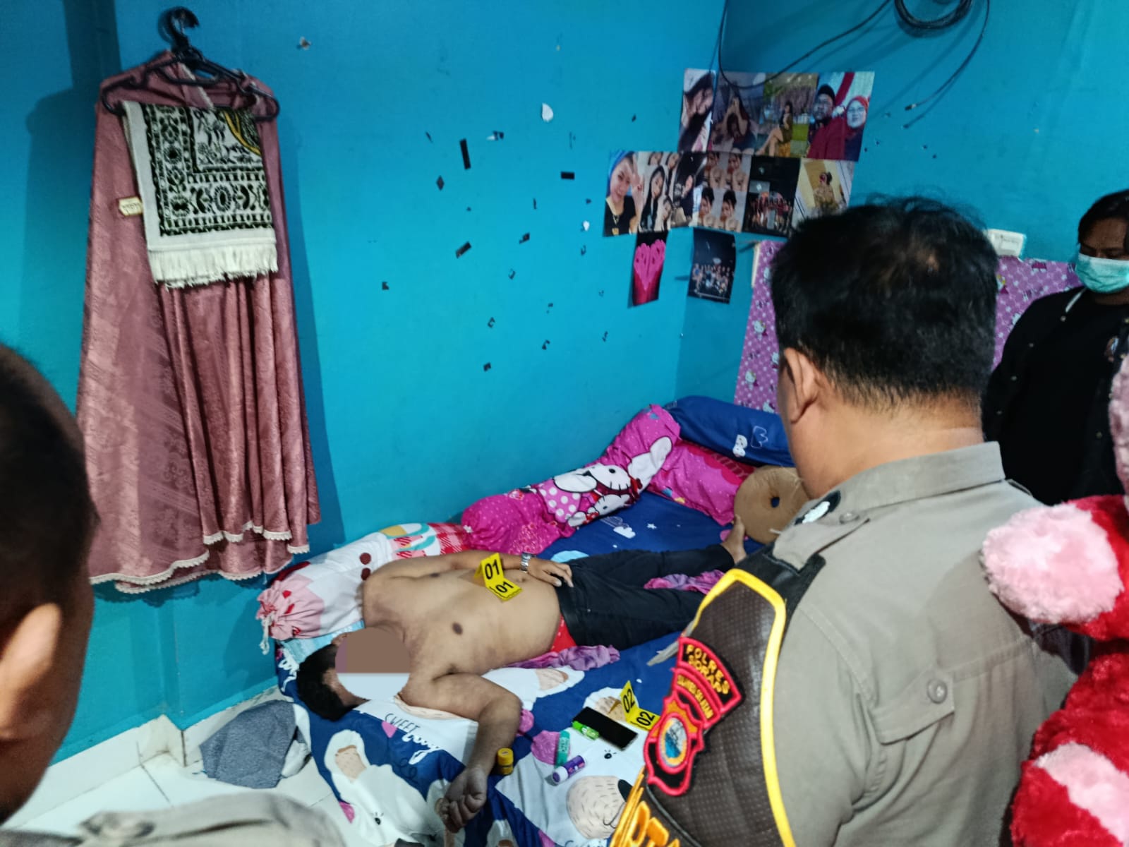 Saat petugas tiba di lokasi, korban telah dalam keadaan meninggal dunia.