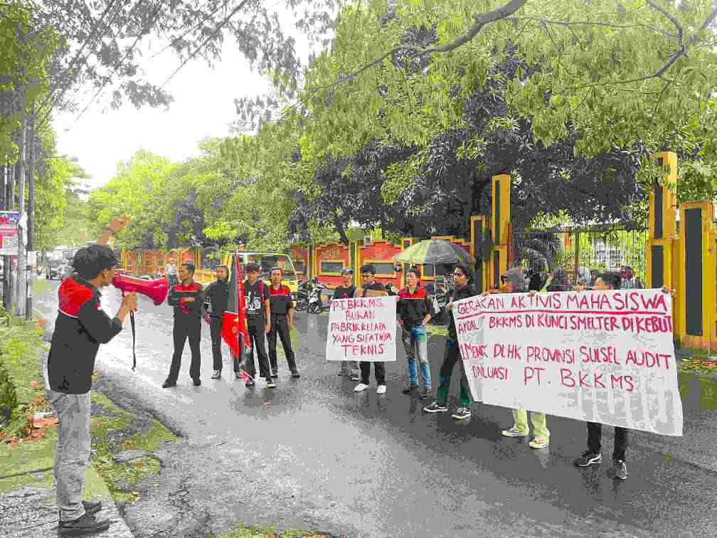 Dalam aksinya, mereka membentangkan spanduk yang bertuliskan “AMDAL PT. BKKMS DIKUNCI SMELTER DIKEBUT” dan satu tuntutan Mendesak DLHK Provinsi Sulsel Audit dan Evaluasi PT. BKKMS.