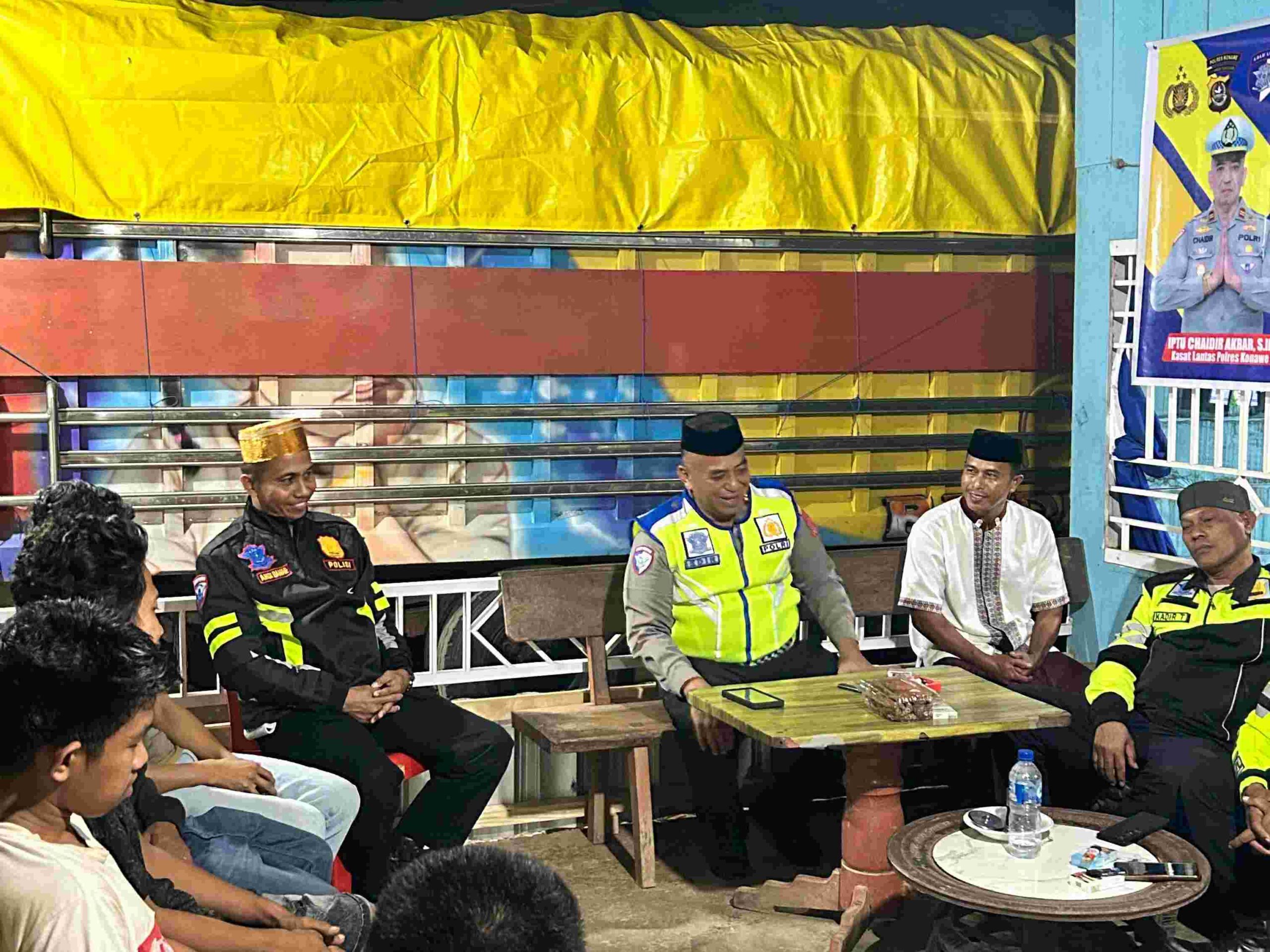 Di bawah lampu jalan yang temaram, suasana kebersamaan pun tercipta. Polisi dan para sopir berbincang santai, berbagi cerita perjalanan, sekaligus membicarakan pentingnya keselamatan di jalan.