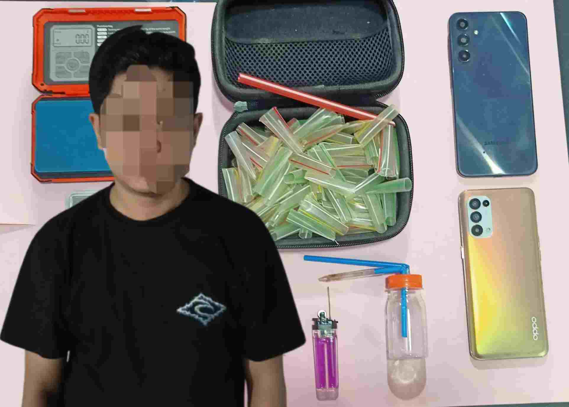 Dari hasil penggeledahan, petugas menemukan 1 batang pipet plastik warna hijau yang di dalamnya terdapat 1 sachet plastik kecil berisi diduga sabu serta 1 unit handphone merek Samsung warna perak yang disimpan di saku celana pelaku. Berdasarkan hasil pemeriksaan laboratorium, berat barang bukti sabu tersebut sebesar 0,0525 gram. Pelaku mengakui bahwa sabu tersebut dibeli secara langsung dari ANG dengan harga Rp200.000.