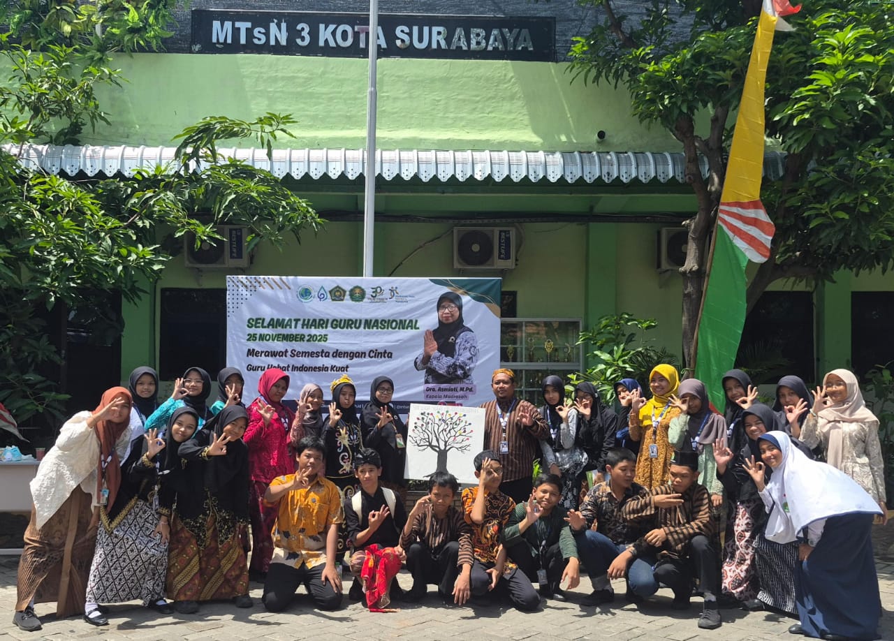 SURABAYA -Dalam rangka memperingati Hari Guru Nasional Tahun 2025, MTsN 3 Kota Surabaya menggelar serangkaian kegiatan yang berlangsung pada Selasa, 25 November 2025 mulai pukul 06.15 samapi 11.30.