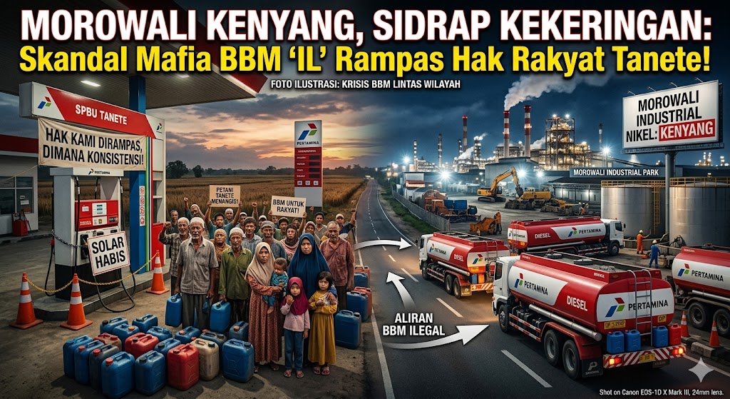 SIDRAP, FAKTA1.COM – Di balik deru mesin industri raksasa di Morowali, tersimpan cerita pilu dari keringat rakyat kecil di Tanete, Kecamatan Maritengngae, Sidrap. Subsidi energi yang seharusnya menjadi napas ekonomi warga, kini diduga kuat telah dirampok secara sistematis oleh mafia bahan bakar minyak (BBM) lintas daerah.