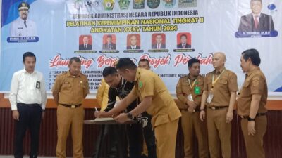 FAKTA1.COM, KONAWE— Pemerintah daerah kabupaten Konawe melaunching proyek perubahan Pelatihan Kepemimpinan Nasional (PKN) Tingkat II Angkatan XXXV Tahun 2024 yang berlangsung di Gedung Aula BKPSDM , Senin pagi (9/12/2024).
