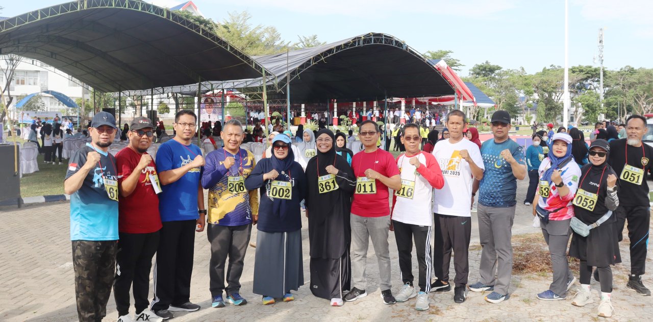 Turut pula para kepala organisasi perangkat daerah (OPD) bersama peserta lain berlari mengelilingi lapangan Kompleks SKPD sebanyak tiga putaran.