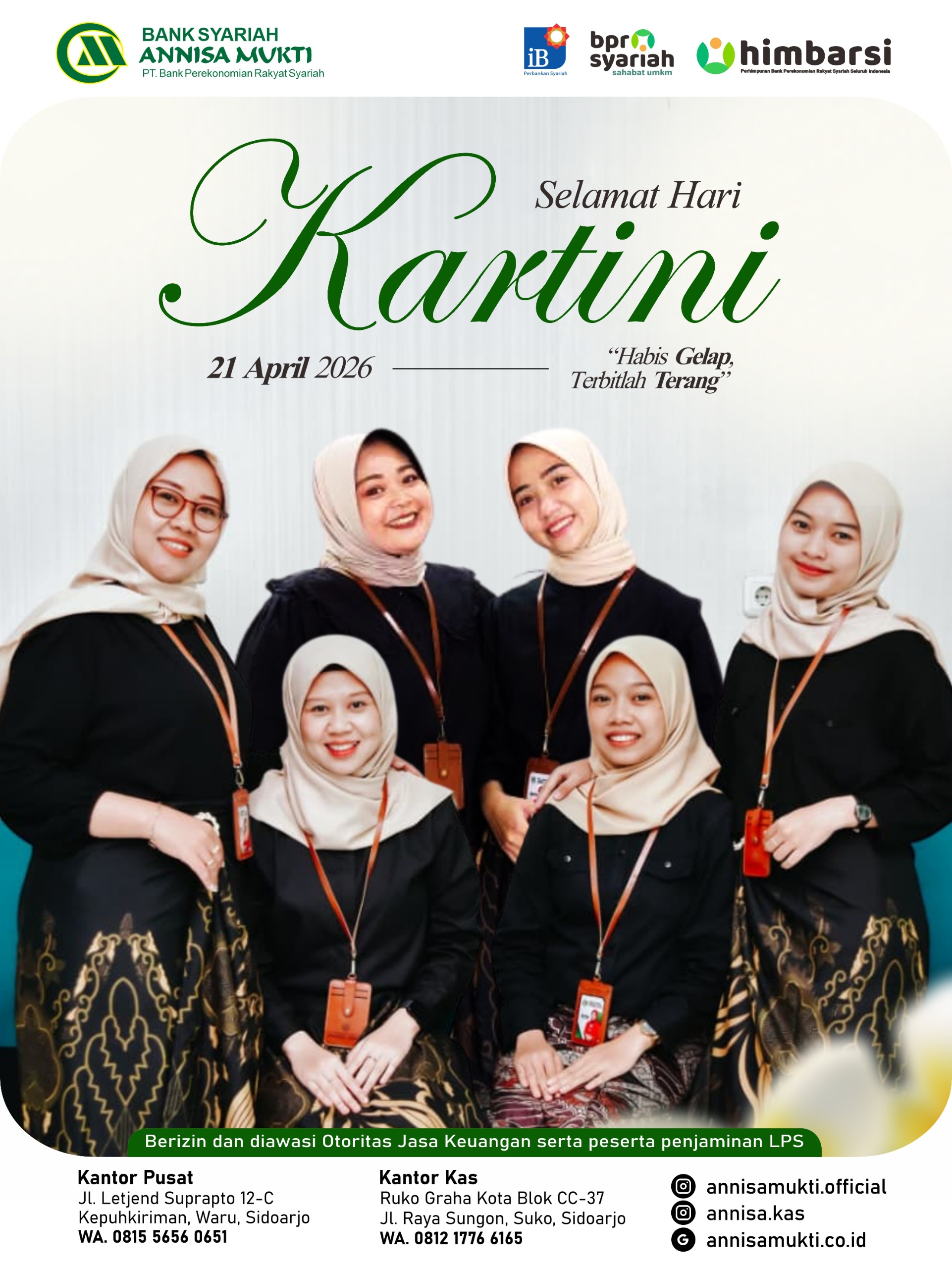 SIDOARJO -Bank Syariah Annisa Mukti dalam memperingati hari Kartini Selasa (21/04/2026) seluruh karyawan pusat maupun kantor kas diwajibkan mengenakan kemeja batik untuk karyawan pria dan kebaya bagi karyawati untuk menunjukkan keberagaman dan kekayaan budaya Indonesia
