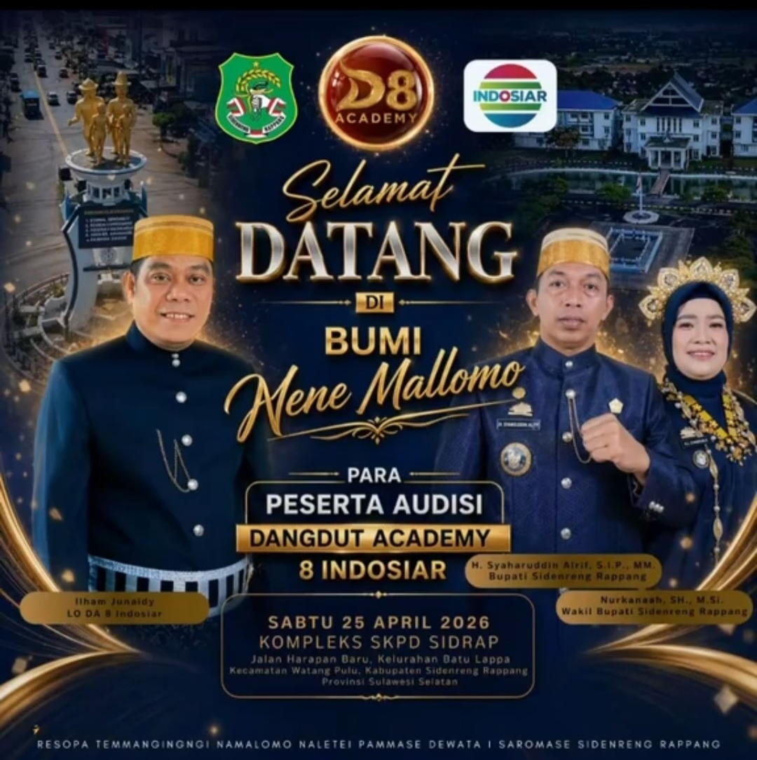 SIDRAP, FAKTA1.COM – Semangat dan harapan besar kini menyelimuti Kabupaten Sidrap. Menjelang pelaksanaan audisi D’Academy 8 Indosiar yang dijadwalkan berlangsung di kompleks SKPD Sidrap pada Sabtu, 25 April 2026, atmosfer kompetisi dan antusiasme warga mulai terasa di setiap sudut daerah.