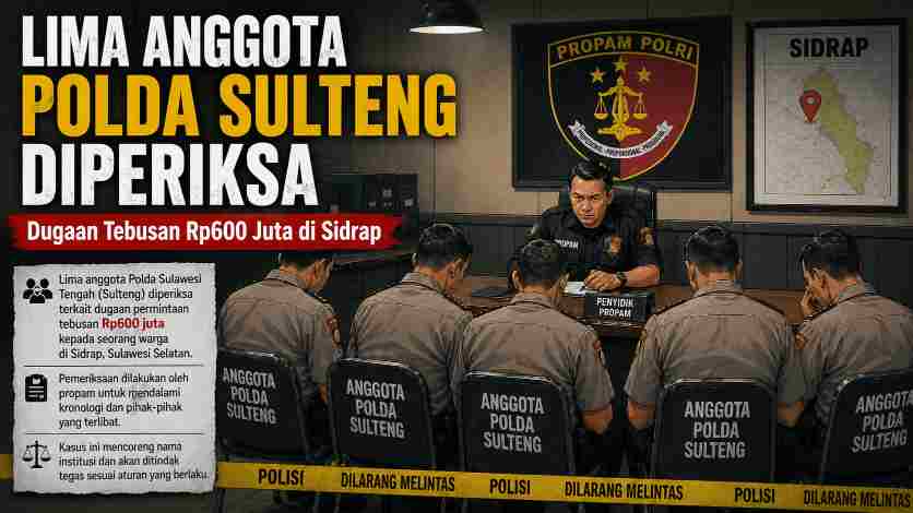 Sebanyak lima anggota Polda Sulawesi Tengah kini resmi diperiksa Bidang Profesi dan Pengamanan (Propam) menyusul mencuatnya tudingan adanya transaksi pembebasan seorang terduga pelaku penipuan.