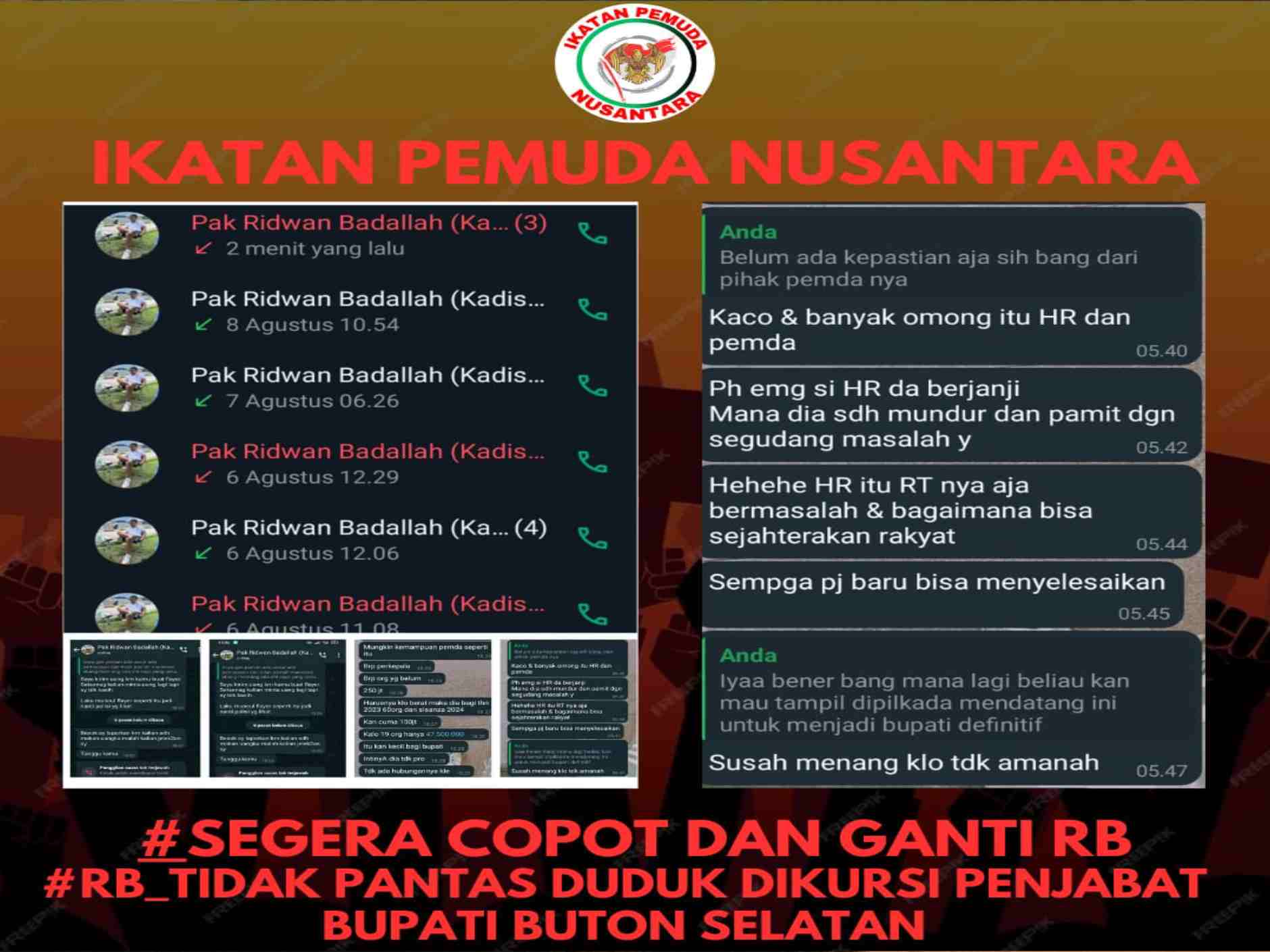 Ikatan Pemuda Nusantara, Minta Kemendagri Agar Segera Mencopot Ridwan Baddallah Dari Pj Bupati Buton Selatan