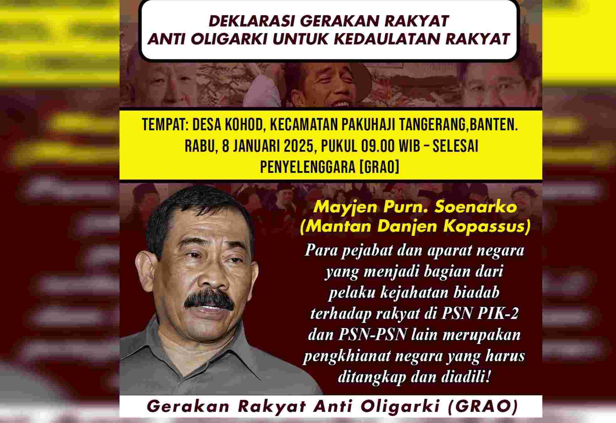 Ingat!, Di Pakuhaji, Tangerang, Banten Bakal Ada Aksi dan Deklarasi Gerakan Rakyat Anti Oligarki