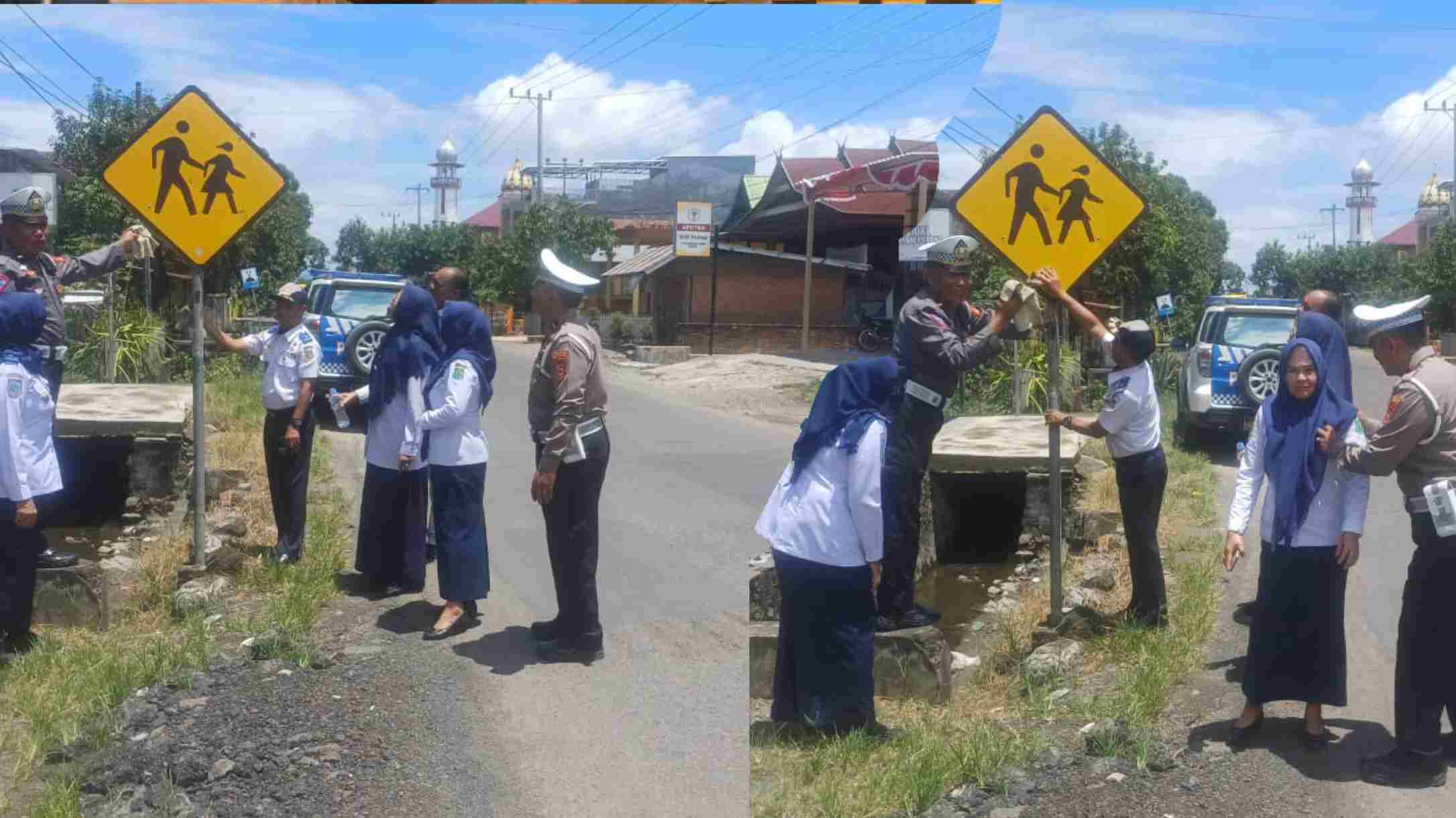Jaga Keselamatan Jalan, Sat Lantas Sidrap dan Jasa Raharja Gelar Aksi Bersih Rambu-Rambu