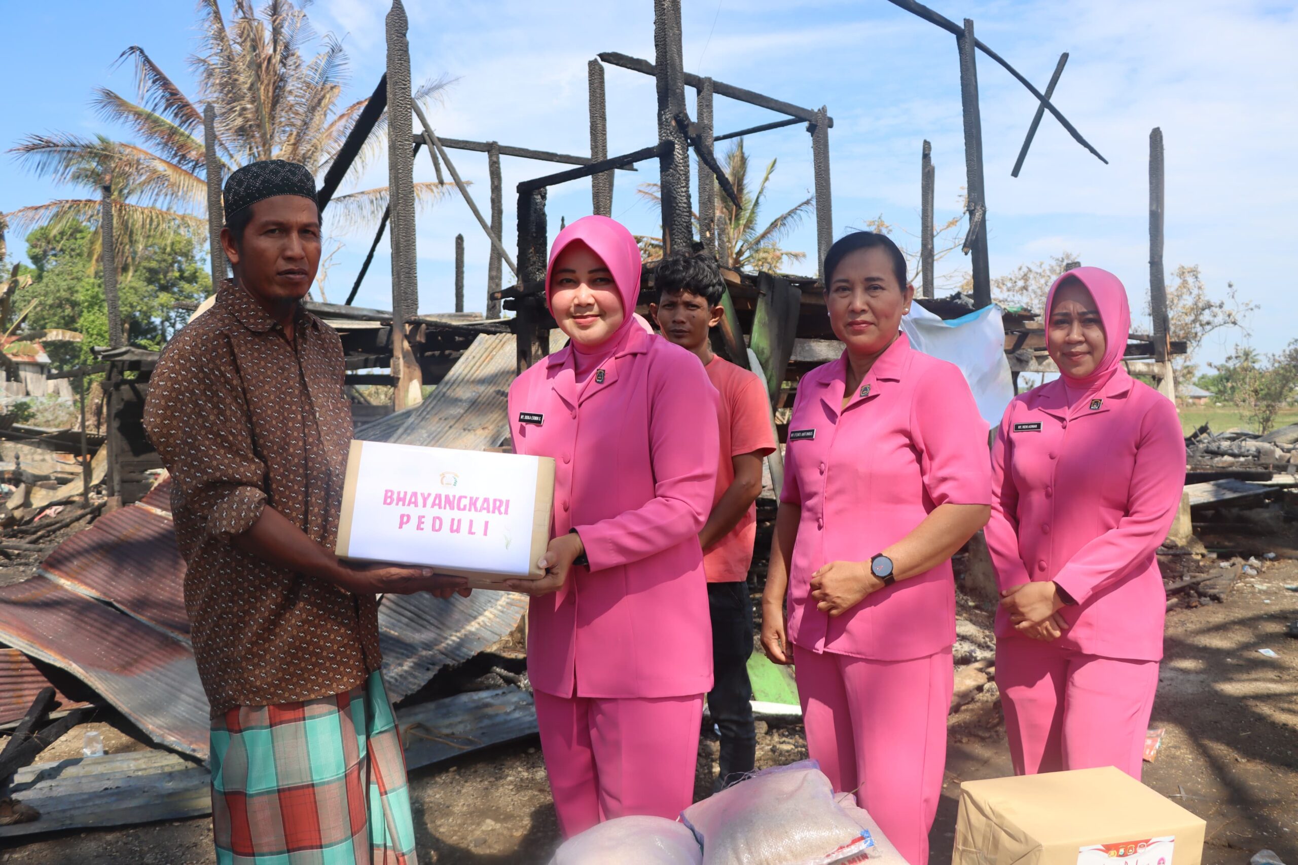 Peduli Terhadap Sesama, Ketua Bhayangkari Cabang Bone Begi Bantuan ke Korban Kebakaran