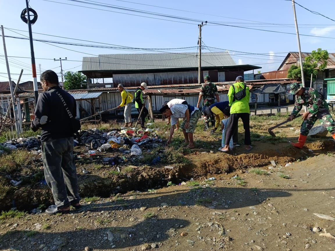 Wujud Kemanunggalan TNI dan Rakyat, Koramil 1420-02/Tellu Limpoe Bersama Warga Gelar Bersih-bersih di Pasar Amparita