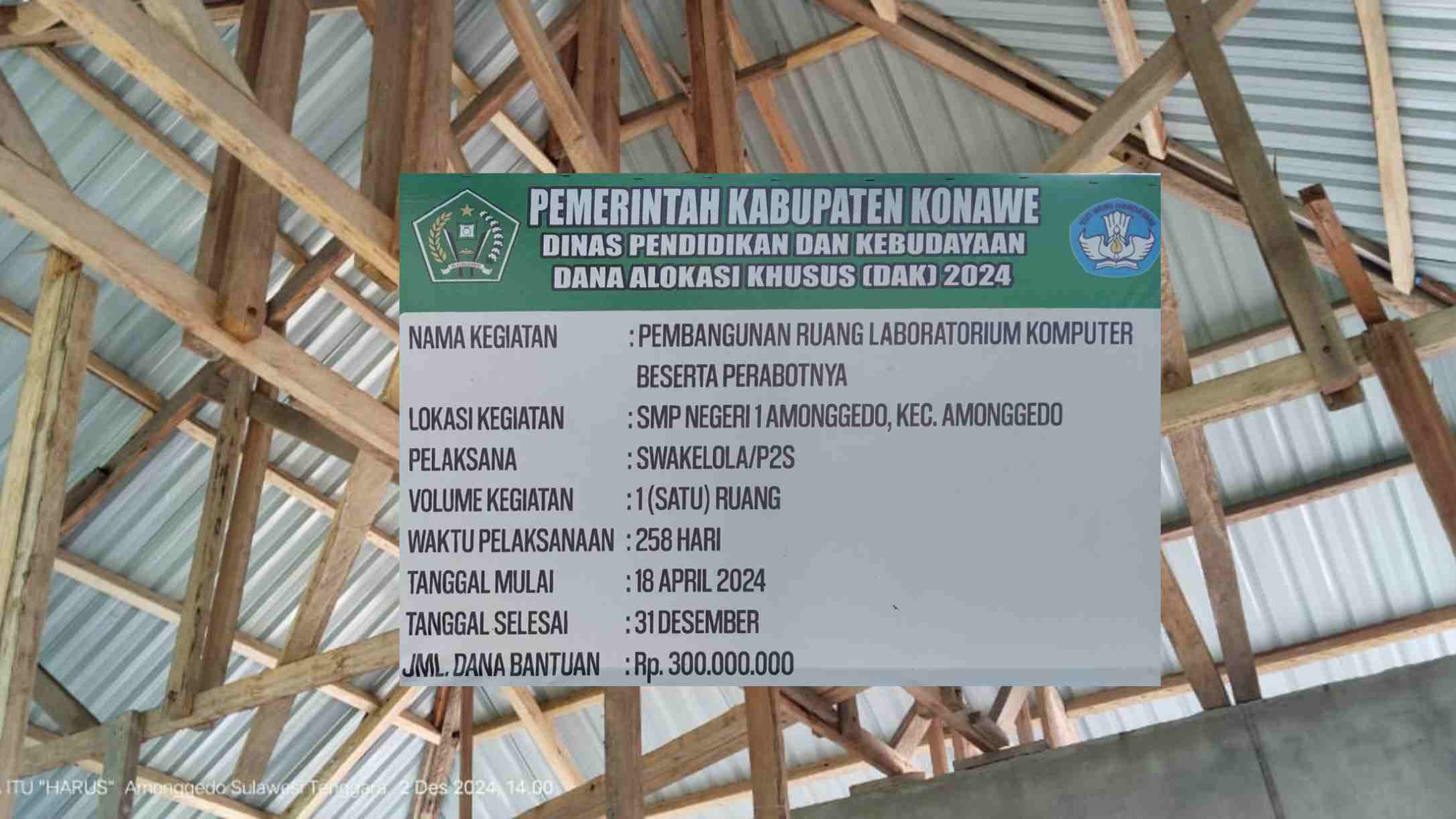 Pengerjaan Pembangunan Ruang Laboratorium Komputer SMPN 1 Amonggedo Diduga Pakai Kayu Rendah Mutu