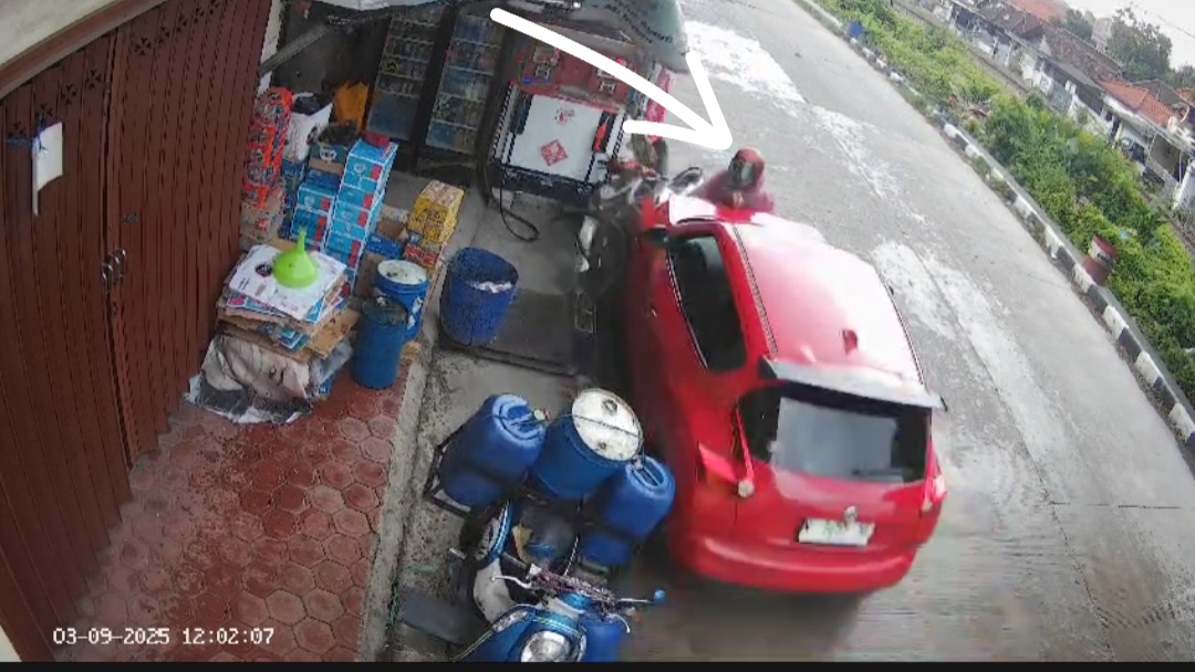 Viral !!! Seorang Pengendara Motor Sedang Isi Bensin Ditabrak Mobil Nissan Juke