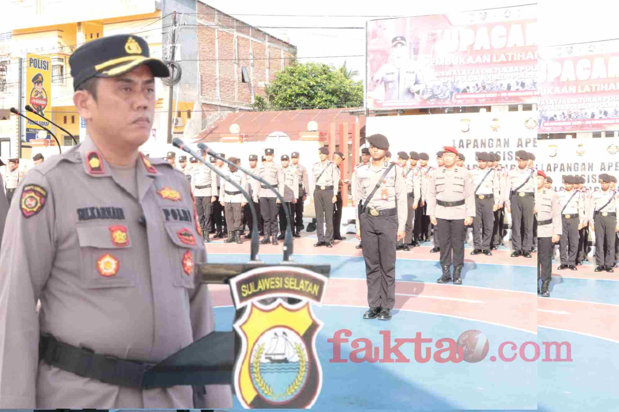 FAKTA1.COM, SIDRAP— Wakapolres Sidrap Kompol Sulkarnain memimpin upacara pembukaan penerimaan 25 siswa latja (latihan kerja) pendidikan pembentukan bintara Polri SPN Polda Sulsel tahun 2025 di lapangan apel presisi Polres Sidrap, Senin (3/11/25) pagi.