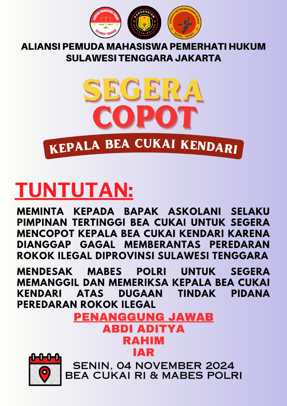 APMPH Sultra Jakrta Desak Kepala Bea Cukai RI & Mabes Polri Segera Mencopot dan Memeriksa Kepala Bea Cukai Kendari