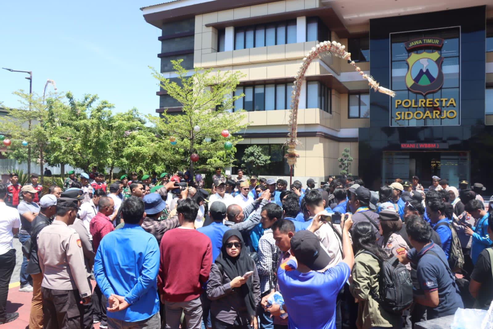 Kedatangan mereka sekitar pukul 10 pagi diterima dengan humanis oleh Kapolresta Sidoarjo Kombes. Pol. Christian Tobing dan personelnya. Hadir juga menerima aspirasi mahasiswa di lokasi, Bupati Sidoarjo Subandi, Wakil Bupati Sidoarjo Mimik Idayana, Ketua DPRD Sidoarjo Abdillah Nasih, dan Dandim 0816 Sidoarjo Letkol. Inf. Dedyk Wahyu Widodo.
