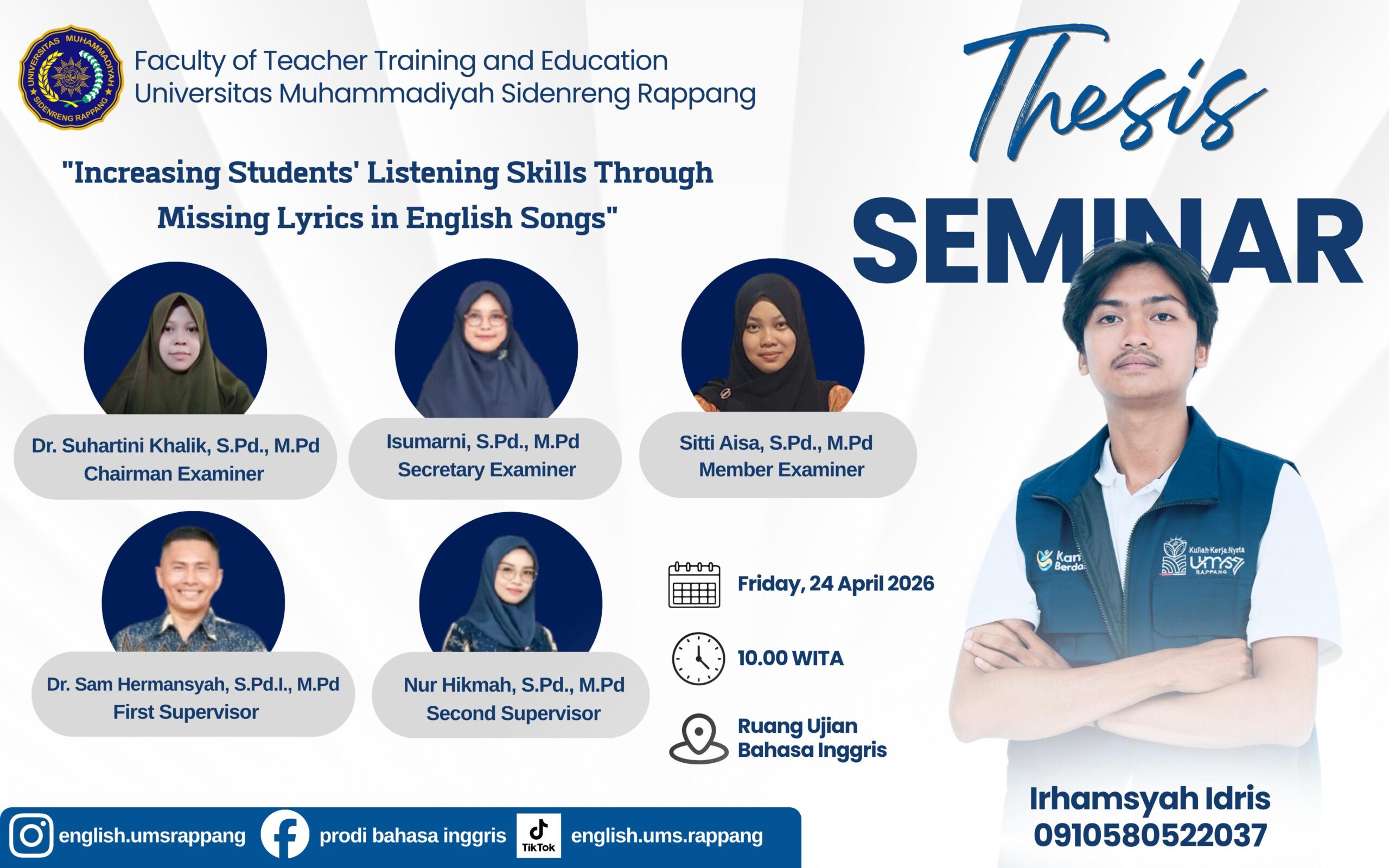 SIDRAP, FAKTA1.COM — Program Studi Pendidikan Bahasa Inggris, Fakultas Keguruan dan Ilmu Pendidikan Universitas Muhammadiyah Sidenreng Rappang (UMS Rappang) kembali menggelar seminar hasil (thesis seminar) pada Jumat (24/4/2026).